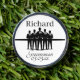 Fix your pitch marks and crack open a cold one. This sharp suited groomsman silhouette design features easy-to-edit text fields for your guy's name, role, and the wedding date.