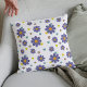 Stay calm and relaxed with this groovy 1970s style flower pattern throw pillow. With it's purple and orange flowers, yellow and turquoise hearts, and colorful circles it's sure to be a fun addition to your sofa or bed.