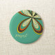 Groovy 60s 70s Hippie Flower Turquoise Daisy Name Button