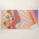 Groovy 70s Mushroom Flower Personalized Peach Checkerboard Beach Towel