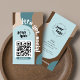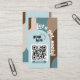 Trendy business card design featuring retro fonts, abstract pattern background in neutral blue and beige tones and space for your custom QR code. Create groovy scannable QR code business cards for your design, photography, beauty spa or any other business using this modern calling card template. You can add any link to the QR code to promote your social media accounts, website or a special offer. All colors are editable when editing using the zazzle design tool.