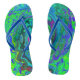 Groovy Abstract Retro Green and Blue Swirl Flip Flops