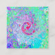 Groovy Abstract Retro Pink and Green Swirl Square Business Card