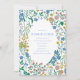 A vibrant and playful summer soirée invitation featuring a full border of hand-drawn wildflowers in bright blue, yellow, coral, and lavender. The bold floral frame surrounds elegant centered text in soft blue and classic serif fonts. Perfect for garden parties, outdoor dinners, or seasonal gatherings. This party invitation can be customized with your event details.