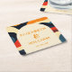 Groovy Colorful Retro Wavy Boho Wedding Square Paper Coaster