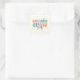 Groovy 80's style in colorful bubble letters personalize with cousins name sticker.