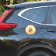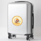 Fade proof and scratch resistant large sticker to place just about anywhere features a smartly dressed Dachshund wearing peace sign shades, and an orange beret and bow tie. Update the text to a name or other messaging as you see fit.
