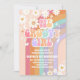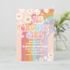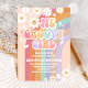 Celebrate your little ones milestone with this retro-inspired groovy first birthday invitation. Featuring pastel rainbow colors, playful daisies, butterflies, hearts, and peace signs, this cheerful design sets the perfect tone for a fun and vibrant party. The bold typography and whimsical details make it easy to personalize while creating a memorable keepsake. Ideal for boho, retro, and flower power themes, this invitation brings peace, love, and joy to your celebration.