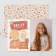 Celebrate in style with this boho birthday party invitation! This fun design features a mix of funky sticker-shaped sections for all your party details. Decorated with groovy elements like a smiley daisy flower, stars, sparkles, a butterfly, a peace sign, a disco ball, a lightning bolt, and a mushroom against a wavy checkered background. On the right side, there is a photo of the birthday girl! The reverse side has a matching flower and sparkle pattern. Perfect for themes like Two Groovy/Two Cool, Five's a Vibe, Let’s Disco, Let’s Roll for rollerblade parties, hippie daisy themes, or any retro-inspired bash. View the link on this page for matching items or visit our store for more birthday party invitations.