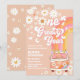 Celebrate your little ones milestone with this retro-inspired first birthday invitation featuring a peach background, daisies, butterflies, stars, and a flower-power van. Perfect for a hippie, boho, or 70s-themed party, this playful design spreads peace, love, and fun while making your childs special day unforgettable. Customize with party details and create a unique keepsake that guests will adore. Ideal for kids birthday parties, retro celebrations, and groovy gatherings.