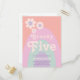 Groovy five, celebrate her 5th birthday with this pretty cool retro 1970s vintage pastel colors lavender purple, pink, mint green and orange rainbow arch fifth birthday party budget invitation. With simple daisy design and easy to use templates this custom invite sets the seen for a cool groovy hippie girls party. Original artwork by artist Catherine Sweetman