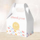 Celebrate your little girls big day in style with our colorful retro checkered happy face party favor boxes, featuring wavy pastel checkers and a totally stellar happy face.