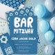 Groovy Handlettering Custom Bar Mitzvah Blue Stars Invitation