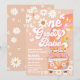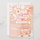 Celebrate your little ones milestone in retro style with this groovy hippie first birthday invitation. Featuring a peach background with daisies, butterflies, stars, moons, and a vibrant rainbow, this design captures the fun and carefree spirit of the 1960s. A flower-power van adds a playful touch, making it perfect for a peace, love, and fun themed party. Personalize with your childs name and party details to create a unique keepsake that guests will adore. This boho-inspired invite is ideal for kids birthdays, retro parties, or any celebration with a whimsical vibe.
