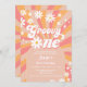 Groovy One Pink Daisy Sunshine Retro 1st Birthday Invitation