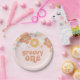 Retro inspired groovy one 1st birthday plates with 70's style flowers and boho fonts and colors.
