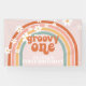 Retro Rainbow Groovy One 1st birthday party banner with boho daisies.