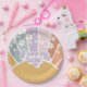 Groovy One Retro Sunshine Rainbow Daisy inspired first birthday party plates.
