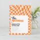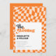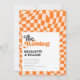 Groovy Orange Checkered Modern Retro Wedding Invitation