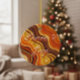 This unique design captures the cozy spirit of the holidays with its stunning, swirling pattern in rich shades of burnt orange, mustard yellow, deep brown, and terracotta. The flowing lines and speckled accents evoke a sense of bohemian tranquility that's a refreshing change from traditional holiday colors.