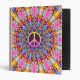 psychedelic kaleidoscope patterns - with a pink peace symbol in the centre. Suit young or old..personal or business