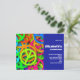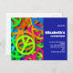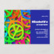 Birthday postcard invitation with a sixties vibe. Cool peace signs in bright and vibrant neon colors featuring all the colors of the rainbow.