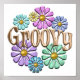 Bring back the 60's and 70's with this retro metallic looking hippy design with metallic flowers and the word Groovy.
