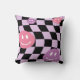 Groovy psychedelic Retro Smiley Checkerboard, Throw Pillow