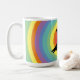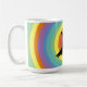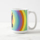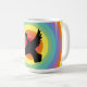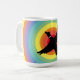 This coffee mug features a duck silhouette among a pattern of retro rainbow circles. You can transfer this colorful design to other types of drinkware and gifts.
