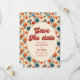 This Save the Date isn't just about reminders; it's about creating anticipation for your extraordinary wedding. After your celebration, hold onto this card as a keepsake, a reminder of the groovy and elegant wedding that's now a cherished memory. Whether displayed in your home or saved as a memento, this Save the Date marks the beginning of a journey filled with nostalgia and timeless charm.