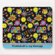 With text mouse pad, Groovy, retro 90s style pickleball pattern with yellow pickleballs and black background.