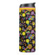 Cool black Thermal Tumbler with Groovy, retro 90s style pickleball pattern with yellow pickleballs and black background.