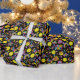 Sweet black Wrapping Paper with Groovy, retro 90s style pickleball pattern with yellow pickleballs and black background.