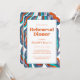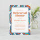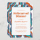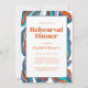 Groovy Retro Blue Wavy Wedding Rehearsal Dinner Invitation