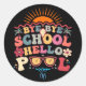 Groovy Retro Design Bye Bye School Hello Pool Cool Classic Round Sticker