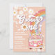 Celebrate your little ones milestone with this groovy retro first birthday invitation! Featuring a pink background with daisies, rainbows, butterflies, and a flower-power van, this playful design brings peace, love, and fun to your party details. Perfect for hippie, boho, or 1960s-inspired themes, this customizable invite sets the tone for a joyful celebration. Guests will love the vibrant colors and nostalgic vibe, making it a standout keepsake for your childs special day.