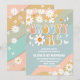 Celebrate your little ones big day with this groovy retro first birthday invitation! Featuring colorful wavy pastel stripes, playful flowers, stars, peace signs, and whimsical fonts, this design brings a fun 70s-inspired vibe to your party. Perfect for a girls first birthday, it sets the tone for a cheerful celebration filled with peace, love, and joy. Customize with your childs name, party details, and make it a keepsake guests will adore.