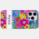 Make a retro statement with this groovy 70s inspired hippie flower power floral iphone 15 pro max phone case! It's modern and trendy with bright multi-colored watercolor flowers. Make it uniquely yours with your name in a mod font in black. It will look fabulous on your phone!