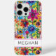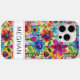 Make a retro statement with this groovy 70s inspired hippie flower power iphone 15 pro max phone case! It's modern and trendy with bright multi-colored watercolor flowers. Make it uniquely yours with your name in a mod CAP font in black. It will look fabulous on your phone!