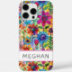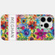 Make a retro statement with this groovy 70s inspired hippie flower power iphone 16 pro max phone case! It's modern and trendy with bright multi-colored watercolor flowers. Make it uniquely yours with your name in a mod CAP font in black. It will look fabulous on your phone!