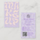 Introducing our retro groovy makeup business card, designed to make your beauty business stand out! This vibrant and playful card features bold, oversized typography in a funky editable retro lavender purple and beige background. Perfect for makeup artists, this card is fully customizable to include your name, contact information, and social media handles. The front showcases the word "MAKEUP" in a standout groovy font, while the back provides ample space for your details, including a modern QR code for easy access to your portfolio and price list. The subtle background pattern and stylish icons ensure your information is presented clearly and attractively. Ideal for anyone in the beauty industry looking to leave a lasting impression with a unique and trendy business card.