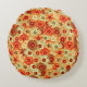 Groovy Retro Orange Hippie Flowers Pattern Round Pillow