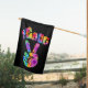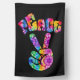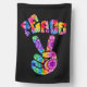 Groovy outdoor flag for your home or business features retro style tie dye peace sign hand with curved text on black background.