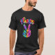 70's retro look t-shirt design features a groovy tie dye peace sign hand with curved text.
