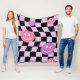 Groovy Retro Smiley Checkerboard, Y2K 90s Fleece Blanket