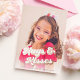 A retro style photo card design featuring rose gold typography that says "Hugs & Kisses" and a personalized Valentine's Day greeting with signature.