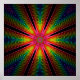 A fractal art design with bright colors including pink, lime green, yellow, orange, purple, and black.