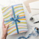 Groovy Swirl wrapping paper in yellow, pink, blue and white. Perfect for birthdays, anniversaries or just for fun!