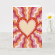 This design shows a large layered heart in the middle, set against a background of wavy stripes. The heart has a deep red outer edge with a slightly rough texture, then a soft pink scalloped ring, and a creamy beige center that feels calm and cozy. Behind it, wide waves run up and down the card in bands of deep rose, coral, and peach, giving the whole scene a gentle sense of motion. Small speckles in light pink and white are scattered across the background and even over parts of the heart, like tiny bits of confetti. There are no people or animals, but the heart shape and warm colors make the mood clearly romantic and sweet 💘❤️. There isn’t any text shown on the front, so the artwork is the main focus. Hope it helps you share a little extra love with someone special this Valentine’s Day 😘.
