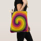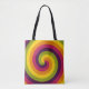 This image is a vibrant, psychedelic spiral design made up of thick, colorful bands that swirl from the center outward. The colors—yellow, orange, magenta, green, and dark purple—alternate in a repeating, hypnotic pattern, evoking a retro or pop-art aesthetic. The strong contrast and symmetry create a feeling of energy and movement, making it visually striking